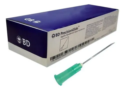 Agulha descartável da linha Precision Glide, com encaixe para seringa tipo Luer. Projetada para aplicações estéreis em procedimentos médicos, laboratoriais ou odontológicos.