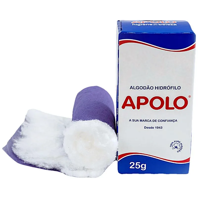O Algodão Hidrófilo Apolo 25g é ideal para cuidados com a higiene e curativos. Produzido com fibras 100% algodão, passa por rigorosos processos de purificação e branqueamento, garantindo um produto macio, absorvente e seguro para uso hospitalar, estético ou doméstico.