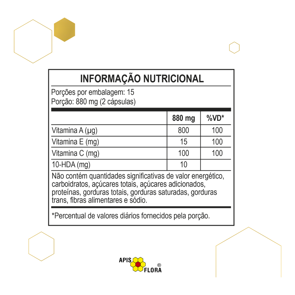 Apireal® – Geleia Real Liofilizada com Vitaminas E, A e C – 30 cápsulas | Apis Flora