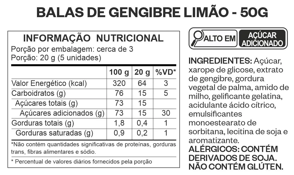 Balas Macias de Gengibre com Limão 50g – Ardrak