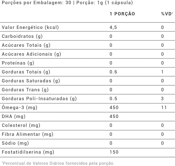 Cada cápsula contém doses equilibradas de DHA e Fosfatidilserina, com alta biodisponibilidade para máxima absorção.