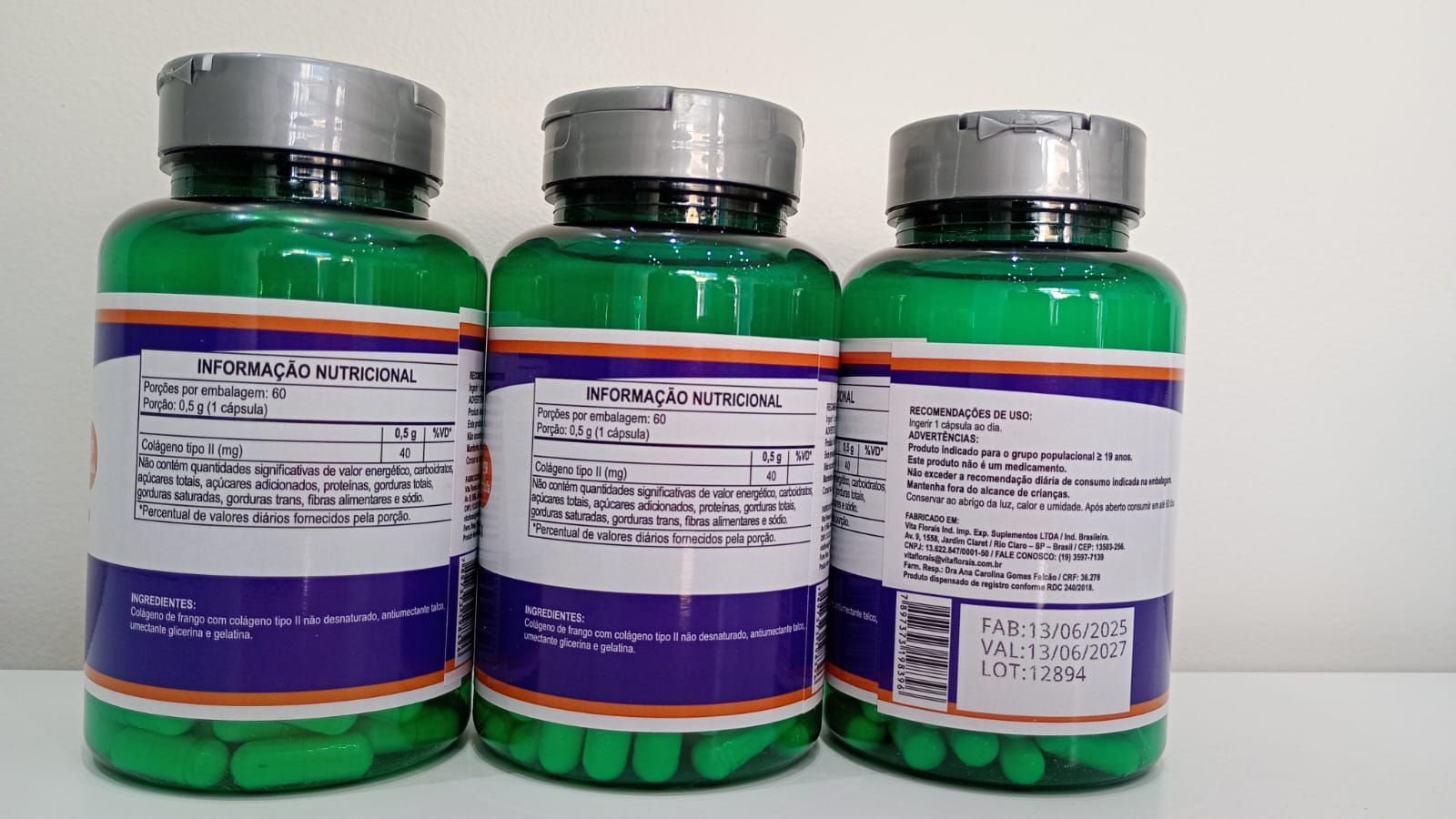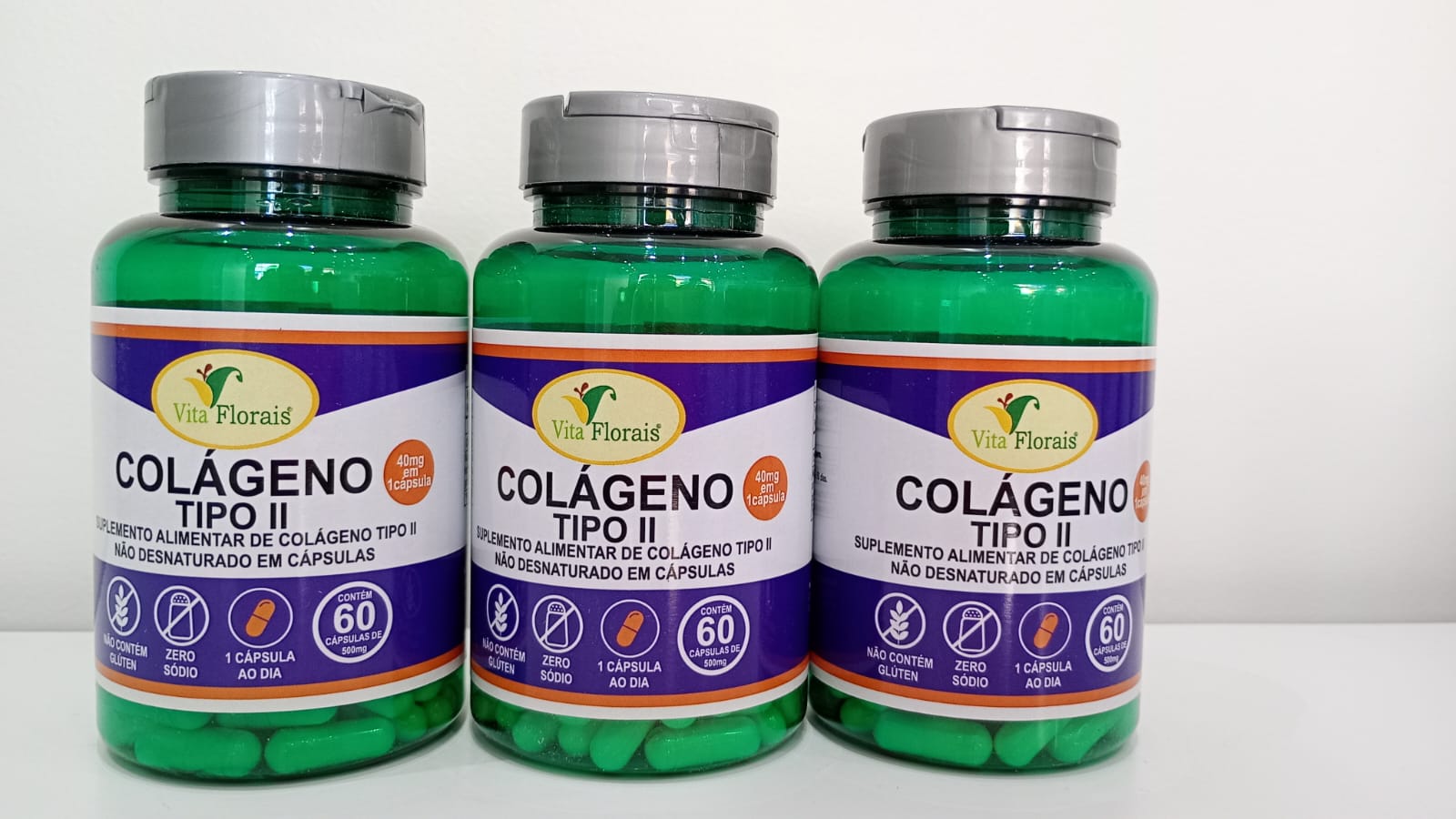 O Colágeno Tipo II da Vita Florais fornece 40mg de colágeno tipo II em uma única cápsula.