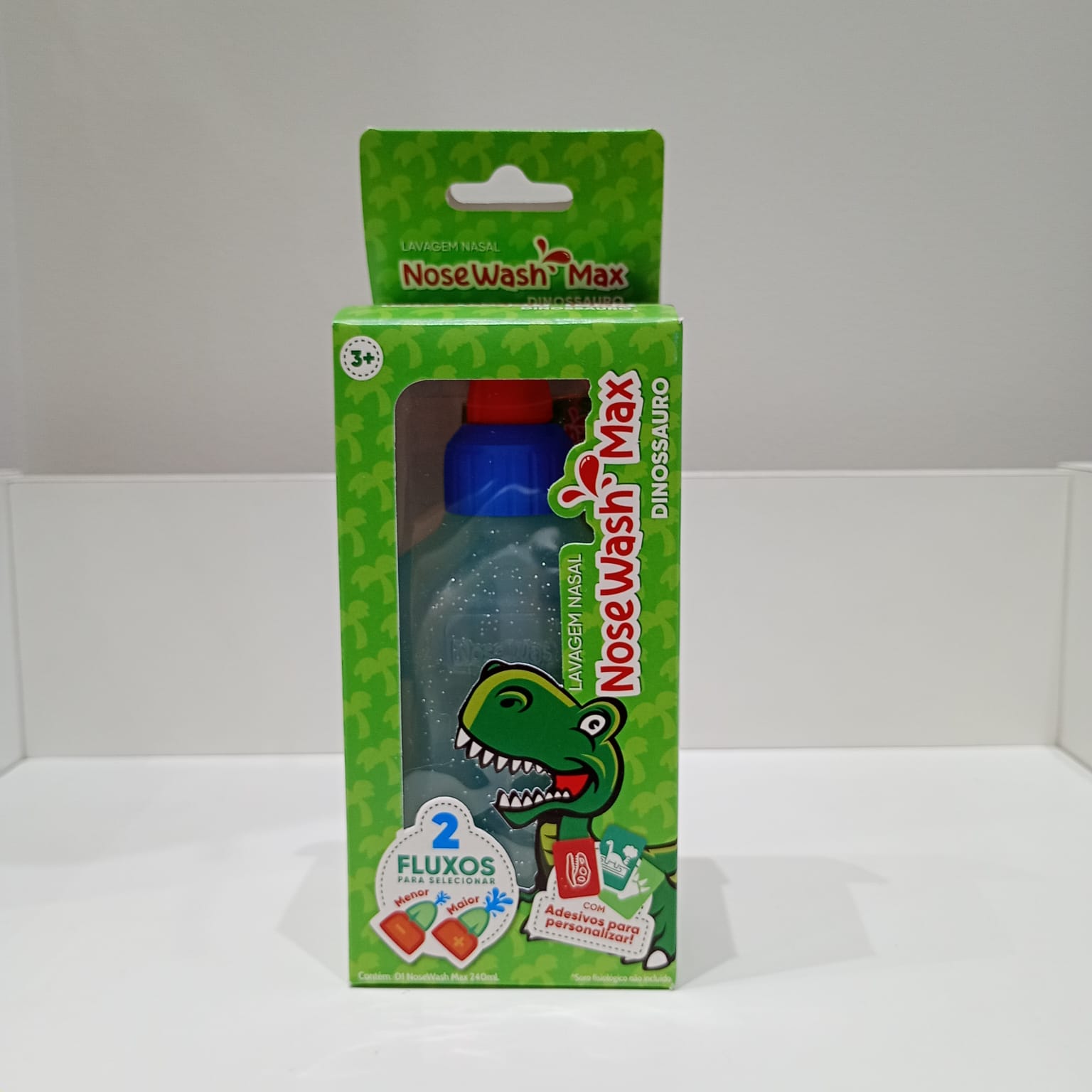 Garanta a saúde respiratória da sua família com o Dispositivo de Lavagem Nasal MAX 240ml Dinossauro – NoseWash. Respirar bem nunca foi tão fácil e divertido!