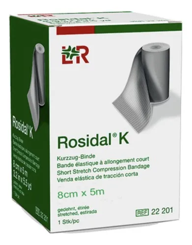 A Venosan Rosidal K 8 cm x 5 m é uma bandagem de alta compressão e curto estiramento, ideal para tratamentos de condições venosas e linfáticas. Composta por 100% algodão, oferece conforto superior e alta tolerância à pele, sendo indicada para uso prolongado.