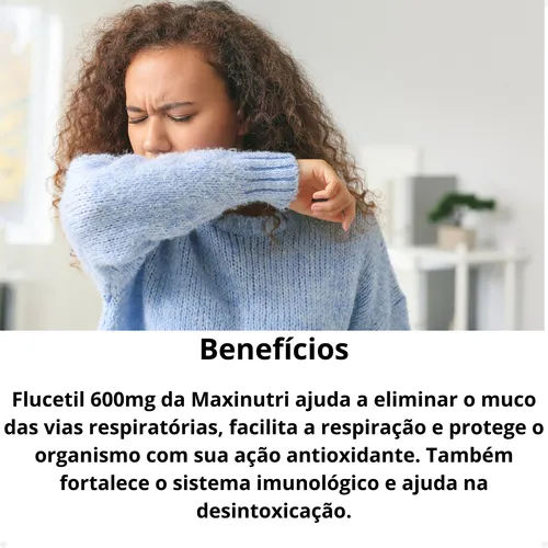O Flucetil em cápsulas contém acetilcisteína, um composto com ação antioxidante e mucolítica, que auxilia na fluidificação das secreções respiratórias e contribui para o fortalecimento do sistema imunológico.