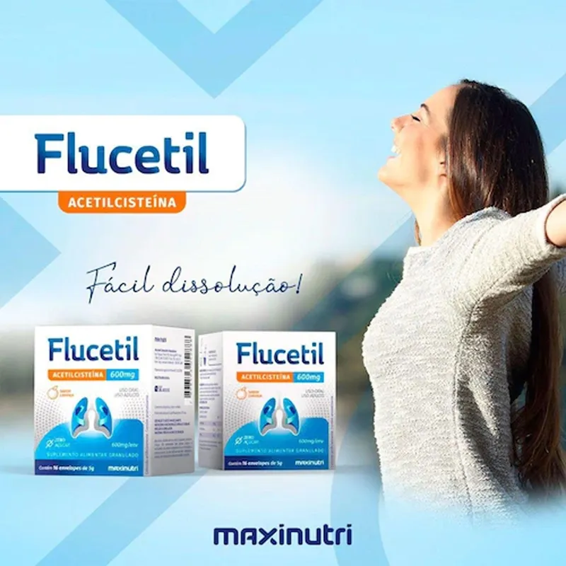 O Flucetil contém acetilcisteína, um importante agente mucolítico que auxilia na fluidificação do muco, facilitando sua eliminação. Indicado para suporte à saúde respiratória e fortalecimento do sistema imunológico.
