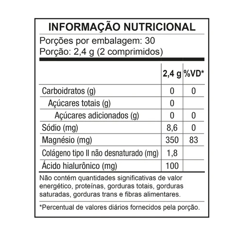 Colágeno Tipo II não desnaturado: 1,8 mg