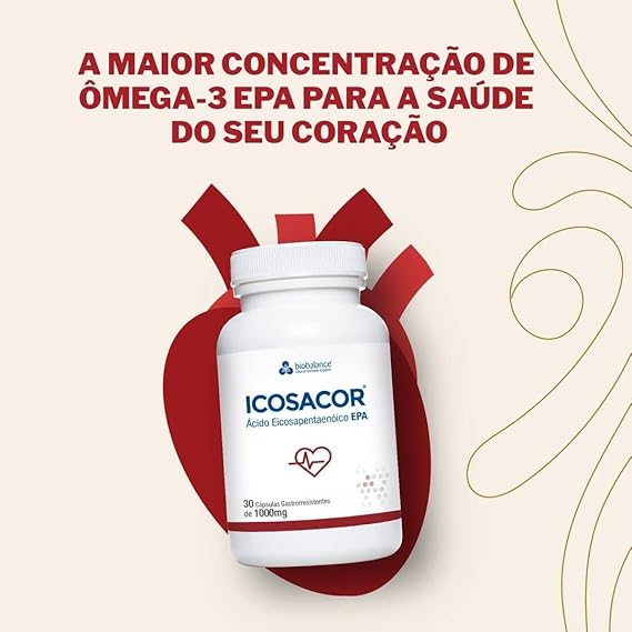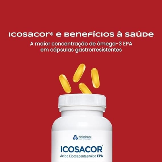 Icosacor é um suplemento de EPA puro (ácido eicosapentaenóico) altamente concentrado, desenvolvido pela BioBalance para auxiliar na saúde cardiovascular e redução dos níveis de triglicerídeos.