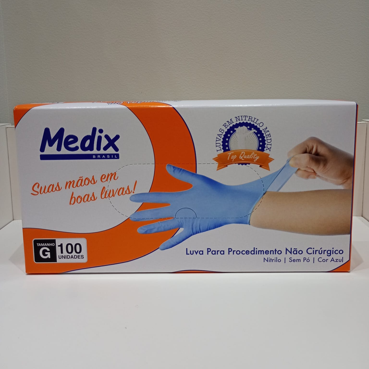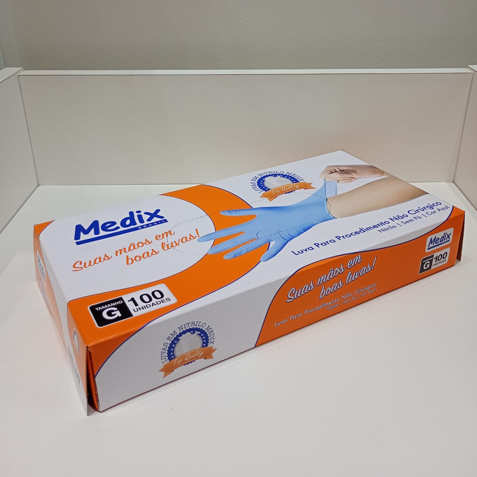 Luva Nitrílica Sem Pó Azul Tamanho G – Caixa com 100 Unidades – Medix