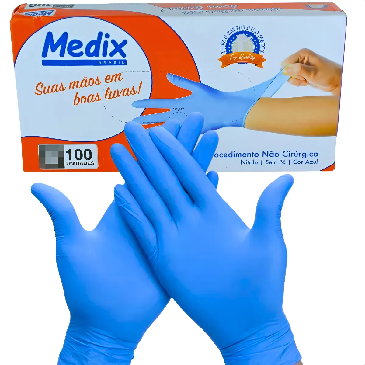 Luva Nitrílica Sem Pó Azul Tamanho M – Caixa com 100 Unidades – Medix