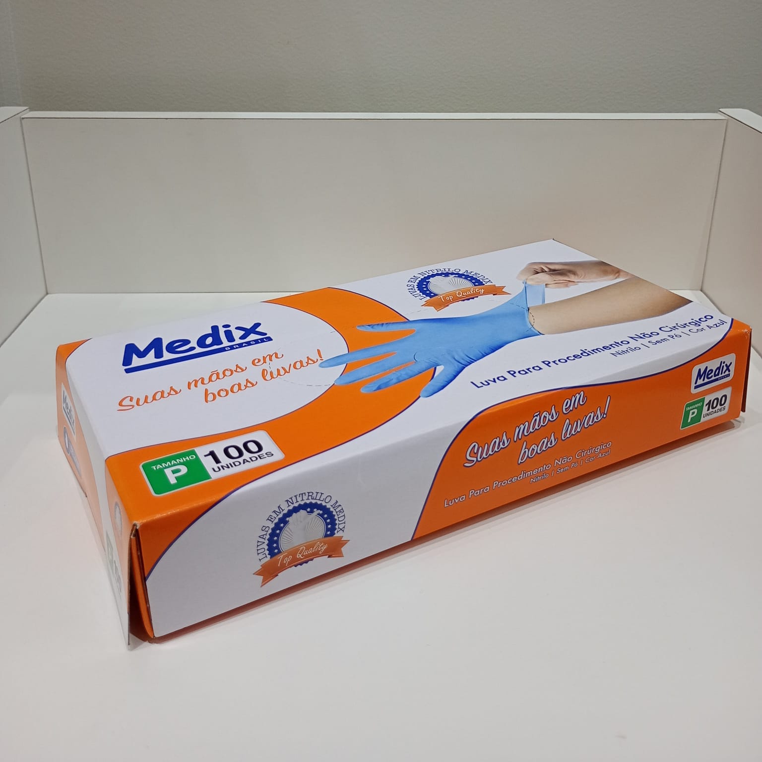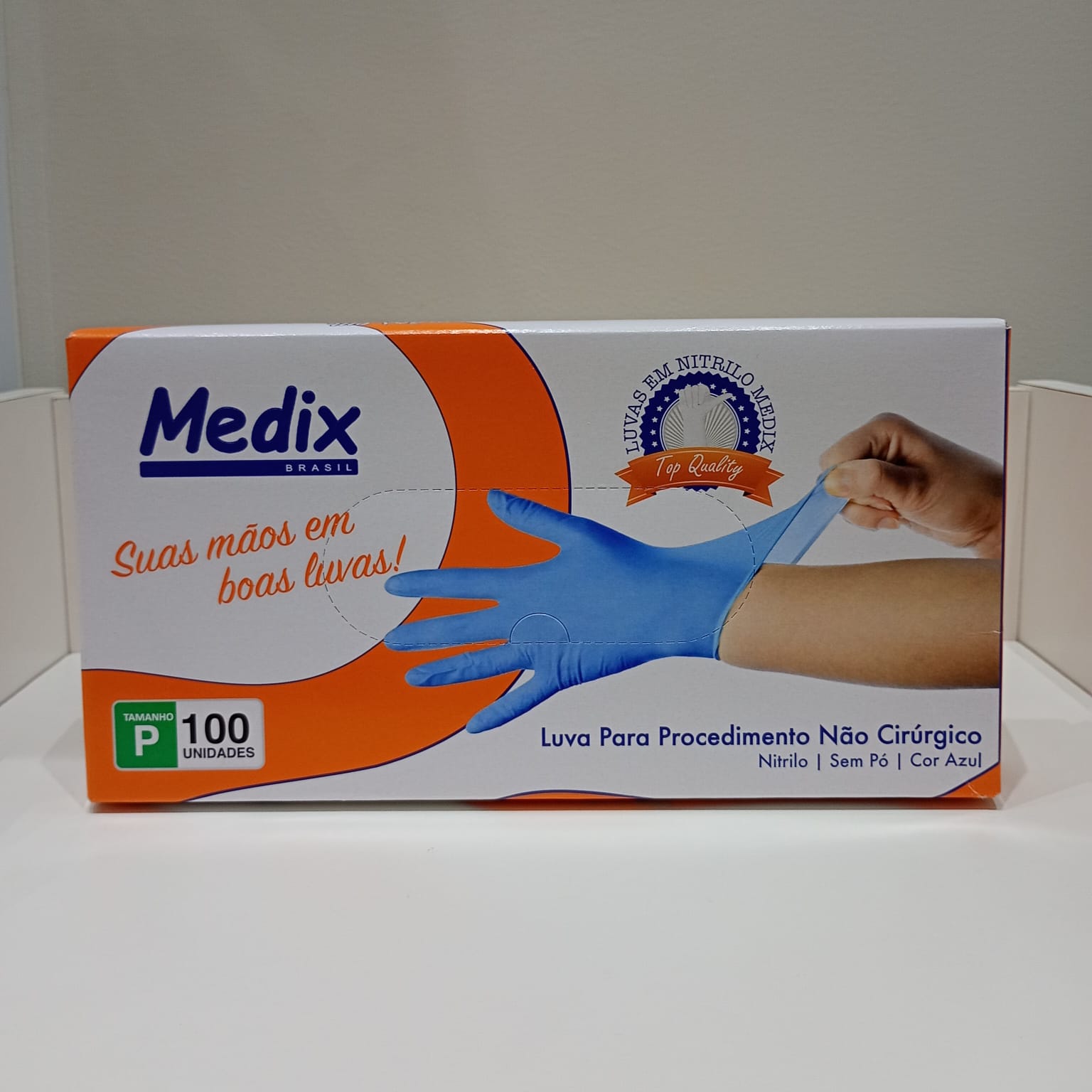 Luva Nitrílica Sem Pó Azul Tamanho P – Caixa com 100 Unidades – Medix