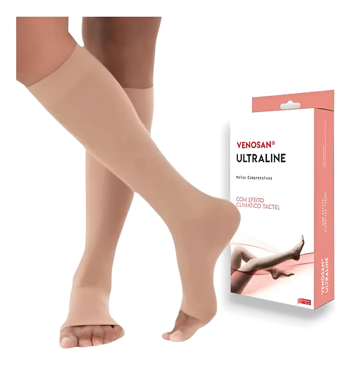 A Meia Compressiva Ultracline 4000 3/4 da Venosan é indicada para auxiliar no tratamento e na prevenção de problemas circulatórios. Com compressão graduada de 20–30mmHg, promove melhora da circulação sanguínea, alívio do cansaço e redução do inchaço nas pernas.