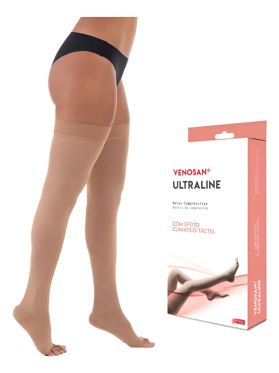 A Meia Compressiva Ultraline 4000 20-30 mmHg da Venosan oferece compressão graduada de média intensidade, indicada para prevenção e tratamento de distúrbios venosos. Desenvolvida com tecnologia suíça, proporciona ajuste anatômico, conforto e excelente durabilidade.