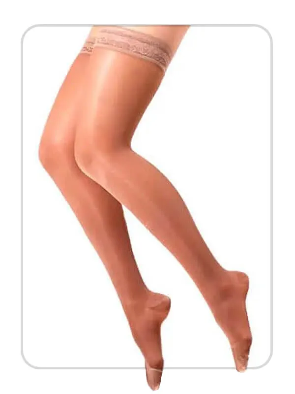 Com compressão 20–30 mmHg, a Legline proporciona suporte firme para reduzir inchaço, dores e a sensação de peso nas pernas. O modelo 7/8 com faixa de silicone mantém a meia no lugar durante todo o dia, enquanto o pé fechado oferece acabamento uniforme e sofisticado.