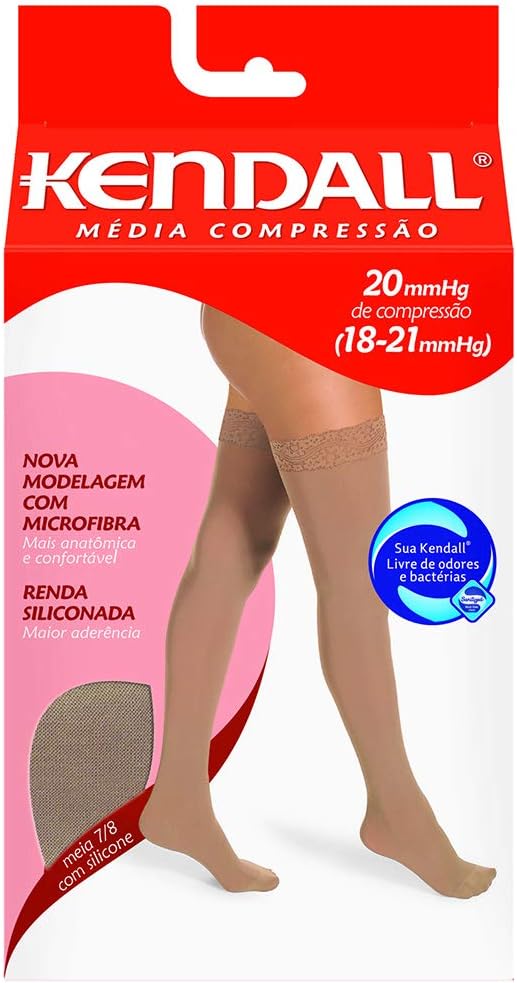 A Meia Compressiva Kendall Renda 7/8 18-21 mmHg une beleza, conforto e tecnologia de compressão graduada, auxiliando na melhora da circulação sanguínea e na prevenção de varizes leves e inchaços.