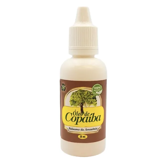Óleo de Copaíba 100% puro, extraído a frio, ideal para cuidados com a pele, alívio de dores musculares e articulares, e suporte ao sistema respiratório. Produto natural e vegano.