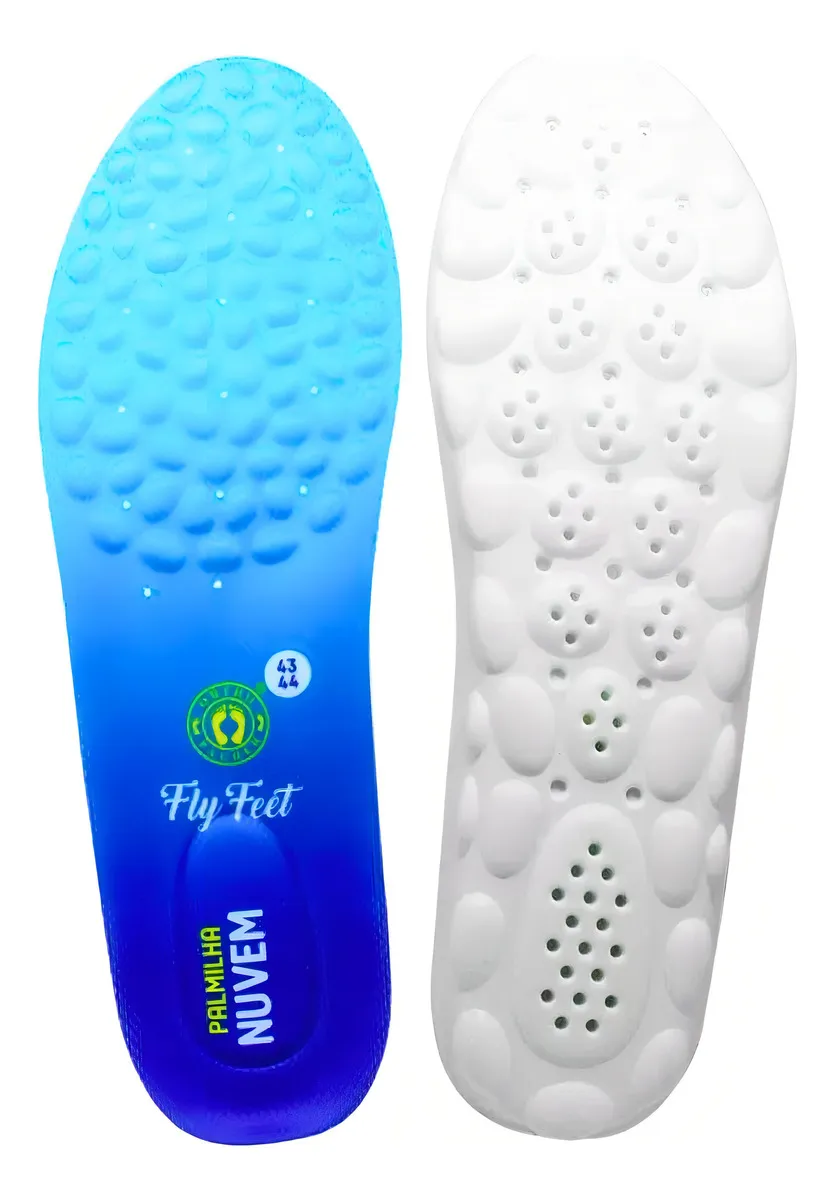 A Palmilha Fly Feet Nuvem Ortho Pauher foi desenvolvida para oferecer máximo conforto, amortecimento e leveza ao caminhar. Produzida com material tecnológico de alta absorção de impacto, proporciona a sensação de caminhar nas nuvens, reduzindo a pressão nos pés, joelhos e coluna.