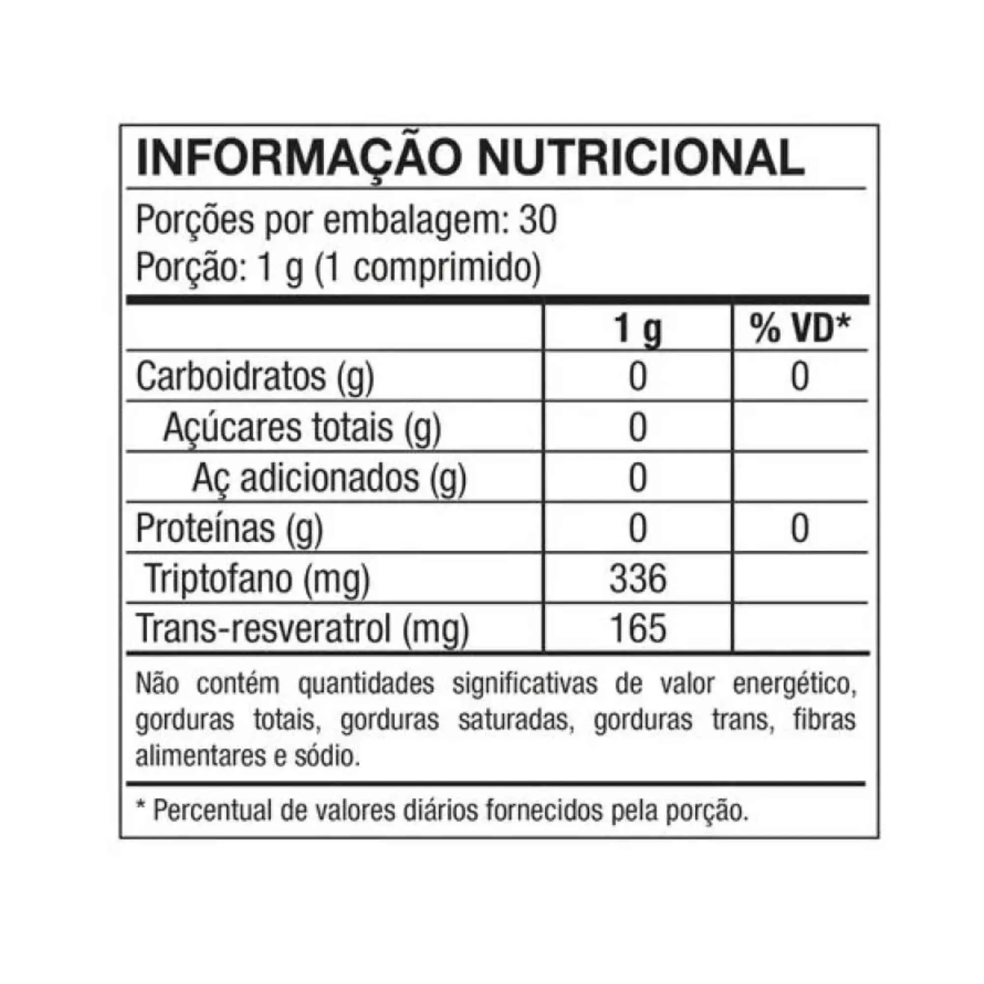 Resveratrol (165mg): Um antioxidante natural encontrado em frutas como uvas e mirtilos, conhecido por auxiliar na proteção celular contra os radicais livres, promovendo envelhecimento saudável e suporte cardiovascular.