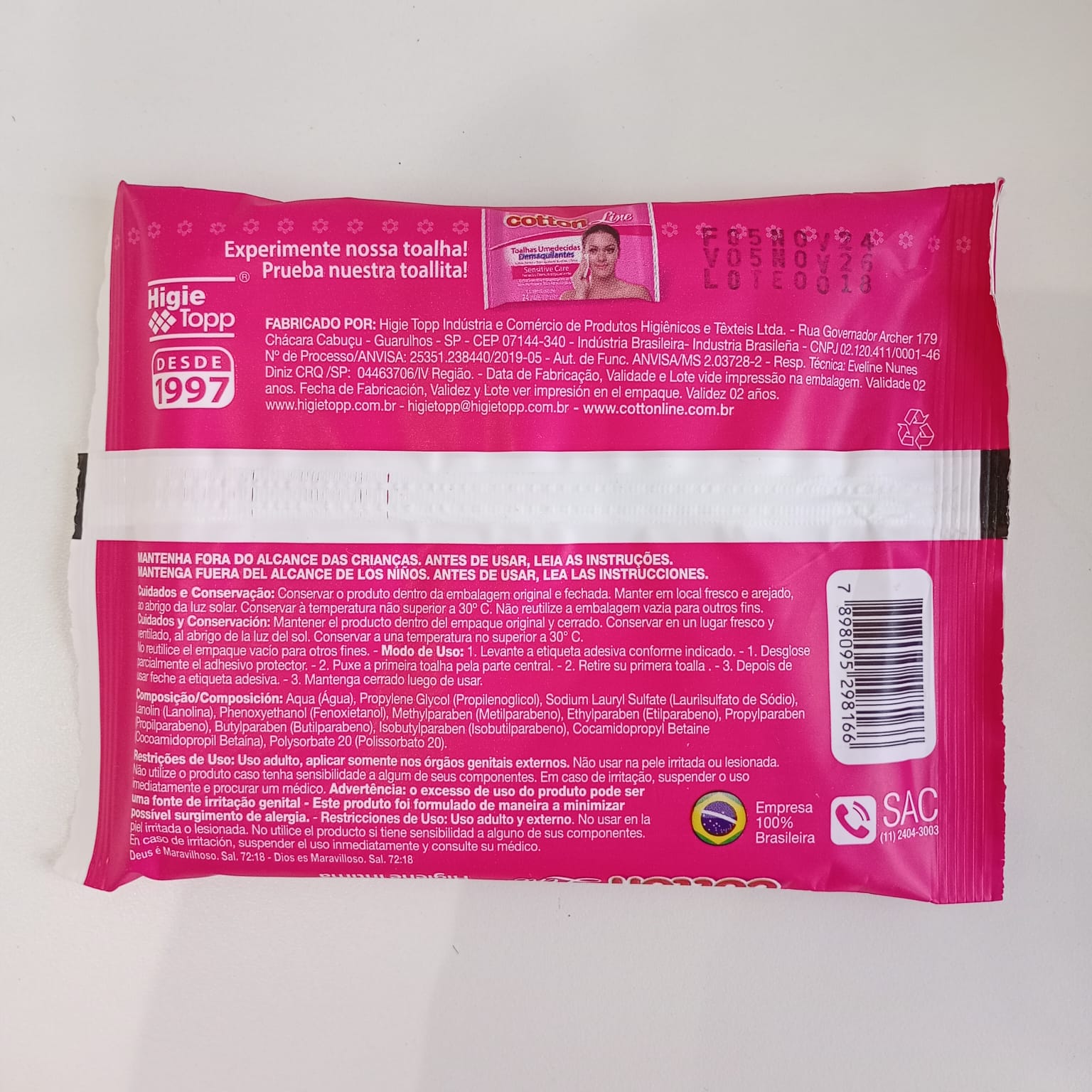 TOALHAS UMEDECIDAS FEMININA COTTON LINE