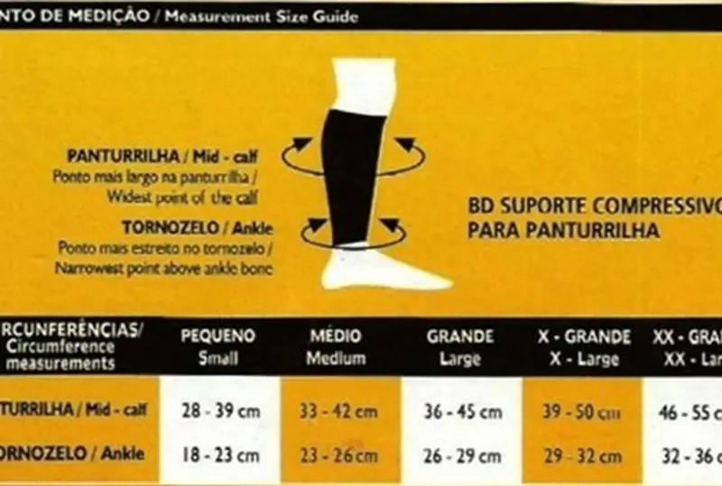Circunferência da panturrilha: 26 a 32 cm